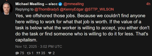 prices are determined by the hand of the market and are unchangeable (lmao what are tariffs), thus you just get offshored, lmao