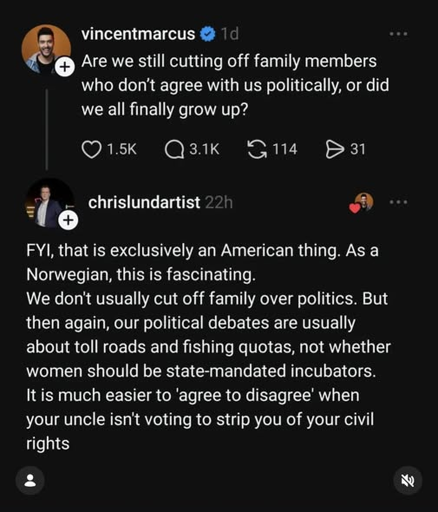 minus-squareHorse {they/them}linkfedilinkEnglisharrow-up52·7 days agolibs will be like “i hate [genocidal colonizer holiday] because i have to hold my tongue around my racist uncle who thinks black people shouldn’t be allowed to vote” no, you really don’t