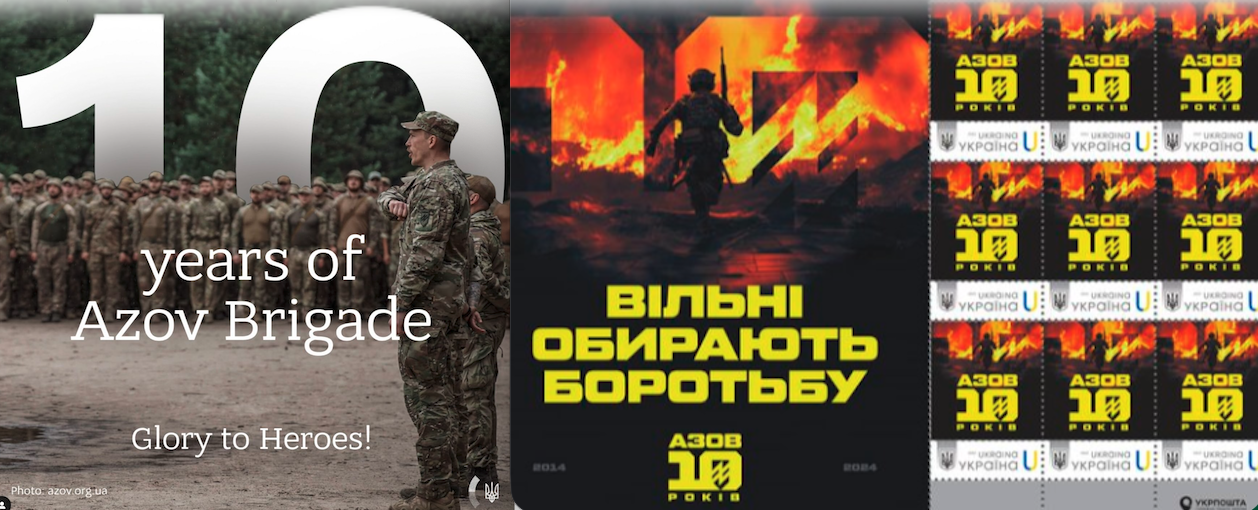 “But the ‘Azov Battalion’ hasn’t been a thing for over ten years!” some would say today — and there is the loophole. In order to justify U.S. support for the NGU Azov Brigade (est. 2023), the State Department seemed to argue that the Congressional ban did not apply anymore. “The two units [Azov Battalion/Brigade] are not the same, despite persistent Russian disinformation to conflate them,” according to the Bureau of Political-Military Affairs. This was 2024, not long after the Ukrainian foreign ministry and postal service celebrated the Azov Brigade’s “10th anniversary.”