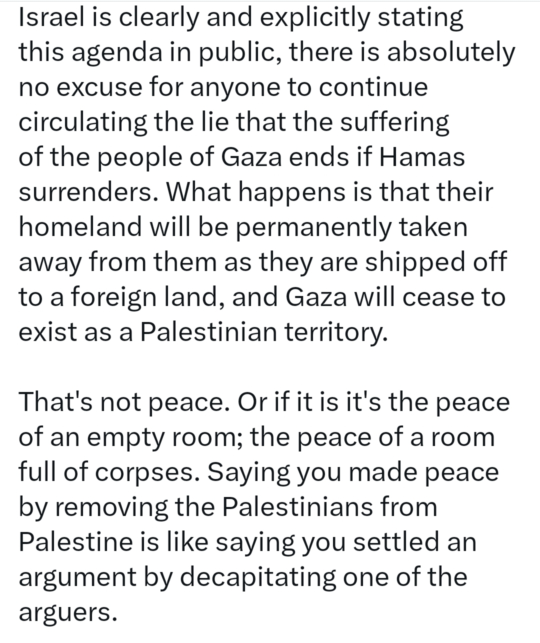 80% of the country has been destroyed, 100% of the population displaced, 50% of the deaths children(, 0 solution has been seriously discussed), … :
