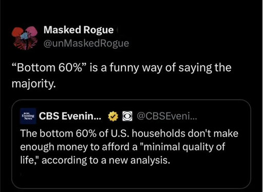 The bottom LOSER, MOOCHER, BROKE-BOY, DRUG ADDICTED, NO TALENT, UNSOPHISTICATED, PEASANT 60% of US households…
