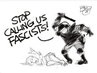 Lib meme - violent police? Must be fascism. While the US is definitely a fascist country and some EU countries are as well (i.e. Hungary, Italy), this cartoon might as well depict Russian police, and even Hamas police used to abuse dissidents in the streets.