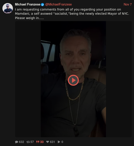 https://xcancel.com/MichaelFranzese/status/1986235667081535659#m (video 1) https://xcancel.com/MichaelFranzese/status/1986512126350139702#m (video 2) https://xcancel.com/MichaelFranzese/status/1986902144105259236#m (video 3) https://en.wikipedia.org/wiki/Michael_Franzese