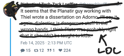 2·10 months agoOther people are absolutely going to take their cues from them and even try to become influencers. (We may wish to only relay particular messages, but we are boosting their personal brand.) That could have utility to intel agencies as well, encouraging everyone to organize openly on platforms that are not just public and as open to interference and infiltration as possible, but also profitable data scraping sources for social research. Knowing there’s no alternative or way around that, and this is what the majority of opposition media in the west consists of is why I am trying to find explanations. It’s not like these kinds of people haven’t been educational to me. I remember my whole pipelining from wondering why game developers can’t do whatever they want & whether my VPN actually works all the way to this conversation.